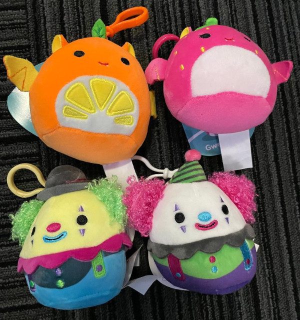 $10 for all 4 Squishmallow plush Clips Clowns and Bats