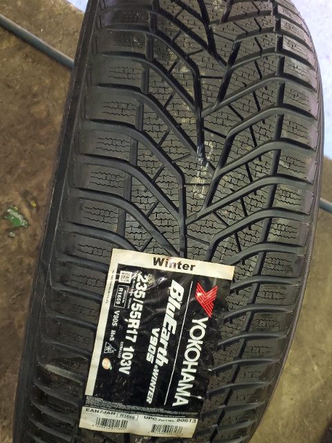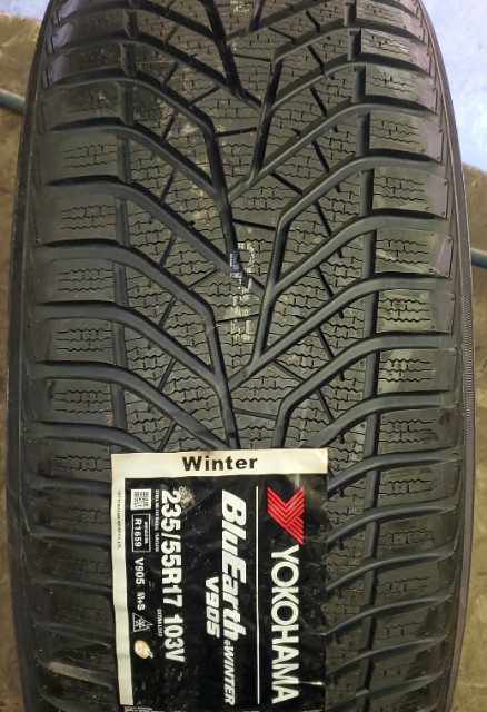 235 / 55 R 17 FITS: BMW X3, Buick Lucerne, Cadillac CTS, DTS, DeVille, Chevy Impala, Ford Escape, Mustang, Crown Victoria, Hyundai Azera, Volkswagen Tiguan, Audi A8, Volvo XC70, Kia Sportage235/55R17 103V YOKOHAMA BLUEARTH V905 WINTER TIRE $140 each plus 13% HST