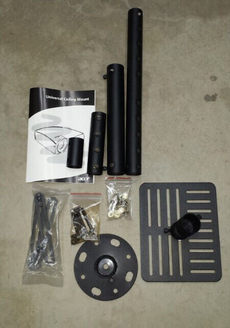 The Acer Universal Ceiling Mount is designed for most Acer P, PD, X, and XD series projectors. Powder coated black.Excellent condition, opened but not used.Photos are of the actual item. Assemled photos are from product website.Please call 416-525-7568 to arrange for pick up: