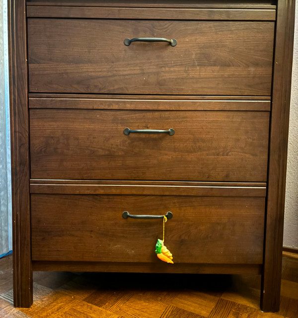 * Dresser – Solid wood, perfect for storage. Dimensions: Height: 3 ft 0.6 inch, Length: 2 ft 7.5 inch, Width: 1 ft 6.75 inch. (Purchased from IKEA) – $85