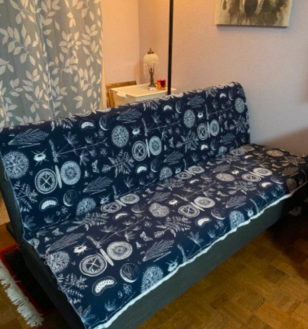 * Futon – Comfortable and stylish, ideal for guests or lounging. Can be used as both a sofa and a bed, perfect for saving space during the day! (Purchased from Amazon) – $75