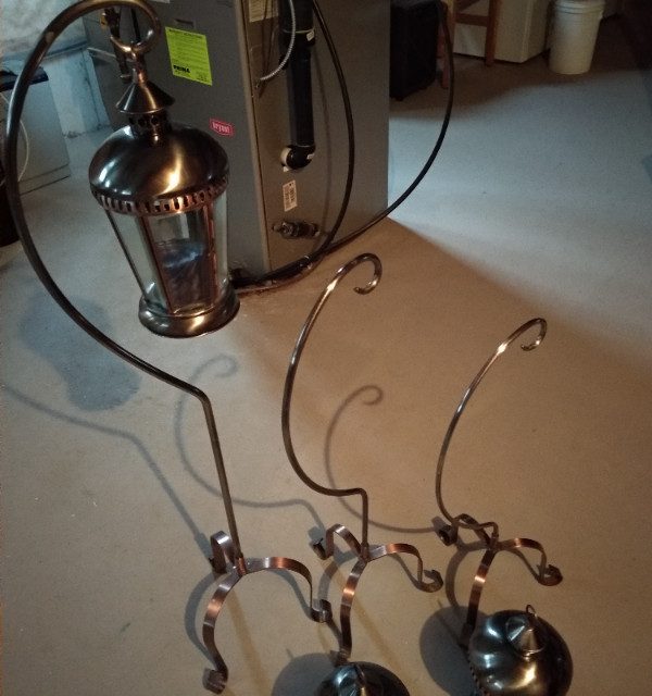Set of 3 Hurricaine Lantern Candle holders. Each one is different height.