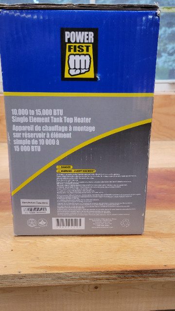 Tank top heater for the duck/deer blind to the garage. This handy heater can be used anywhere you need a boost of warmth to enjoy yourself or to just get the job done. It runs on propane from a bulk 20lb tank. Heats to 15000 BTU. Brand new unopened box. Won at a golf tournament