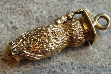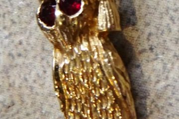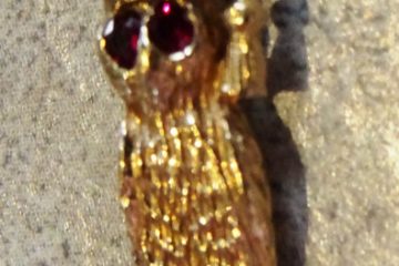 10K gold Owl GRADUATION charm Red Eyes STUDIOUS 3 dimensional