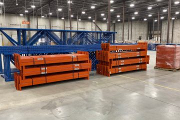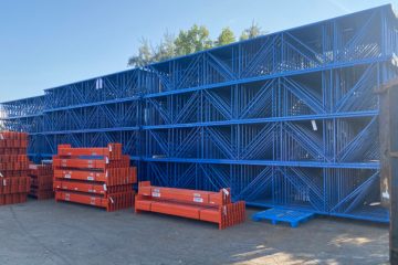 Used 24′ tall x 42” deep pallet racking frames – Used 8′ beams