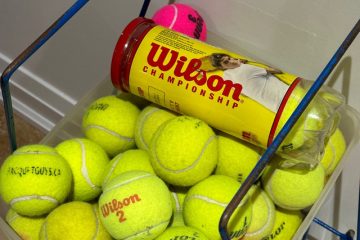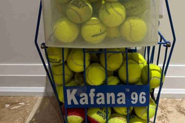Tennis balls and basket