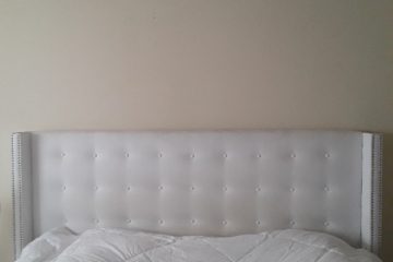 White suede pivoted King Headboard
